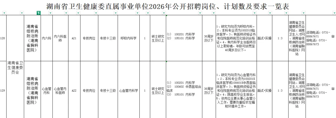 用人单位:湖南省胸科医院