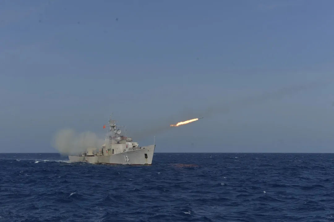 配图:海军第二区171旅13号舰进行火箭深弹摧毁海上目标演练