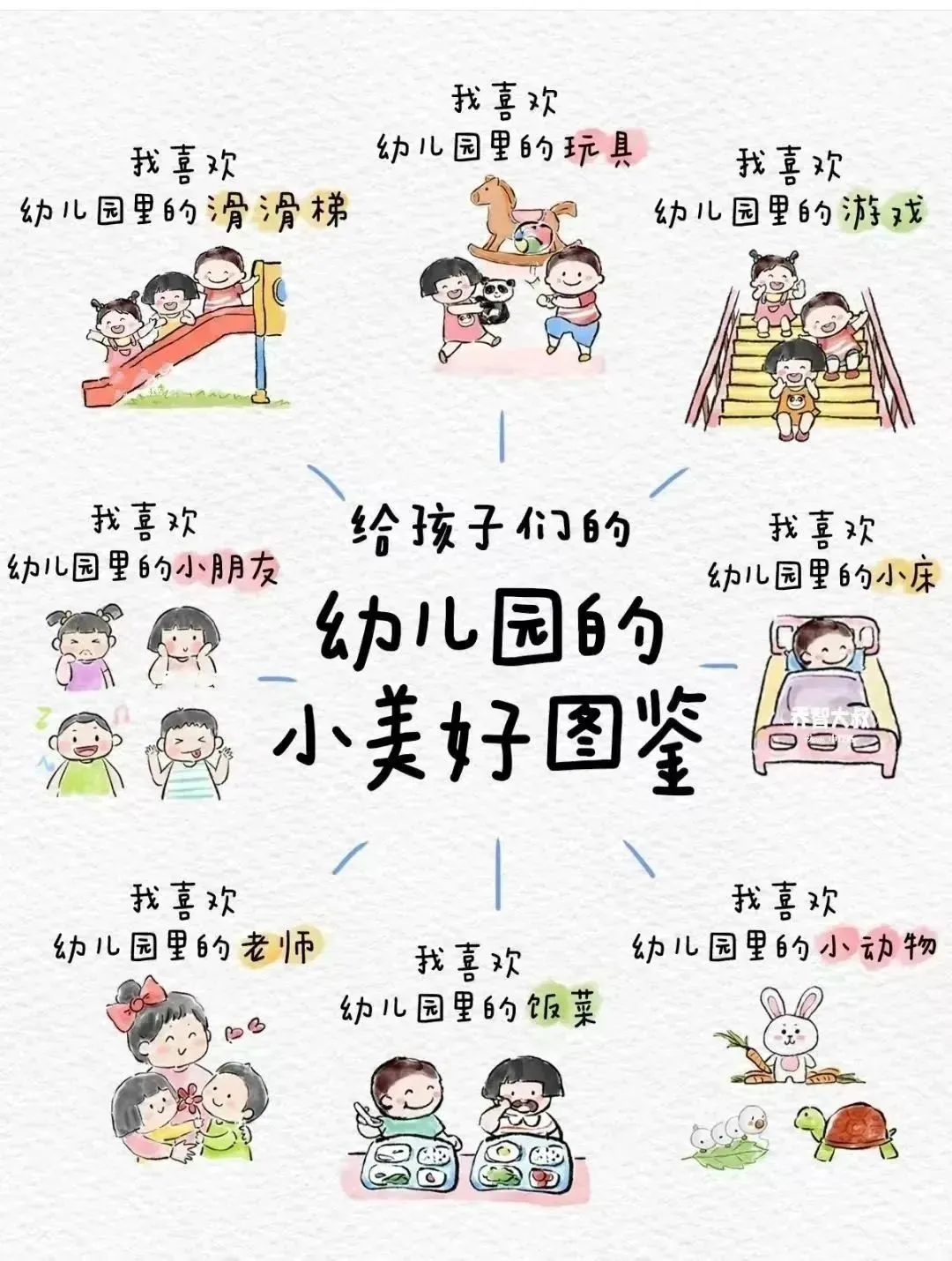 2.回忆幼儿园的快乐时光:与小伙伴愉快的游戏、老师喜欢他、取得进步或获得表扬等,这些积极向上的“正能量”会让孩子怀着迫切的愿望回到幼儿园。