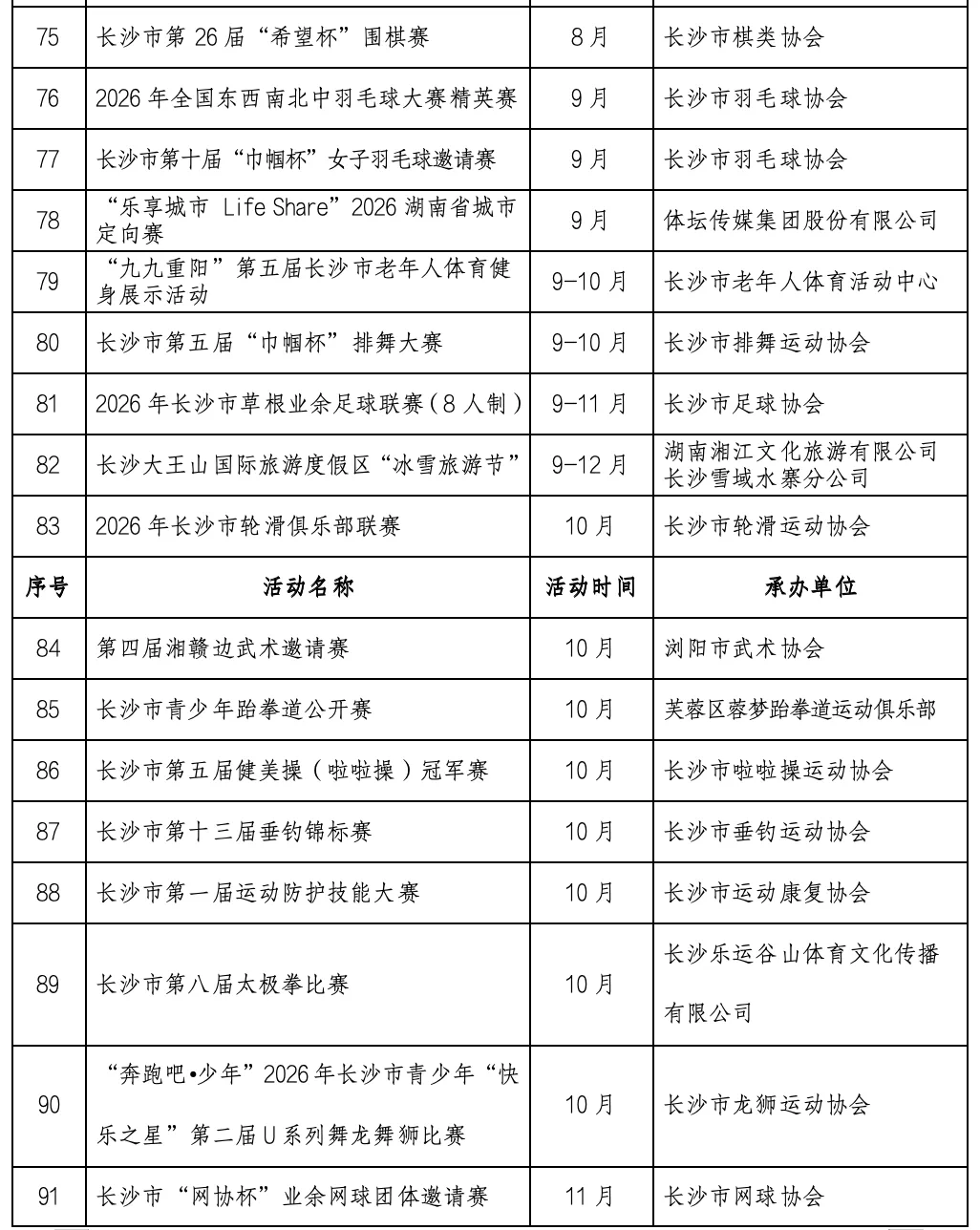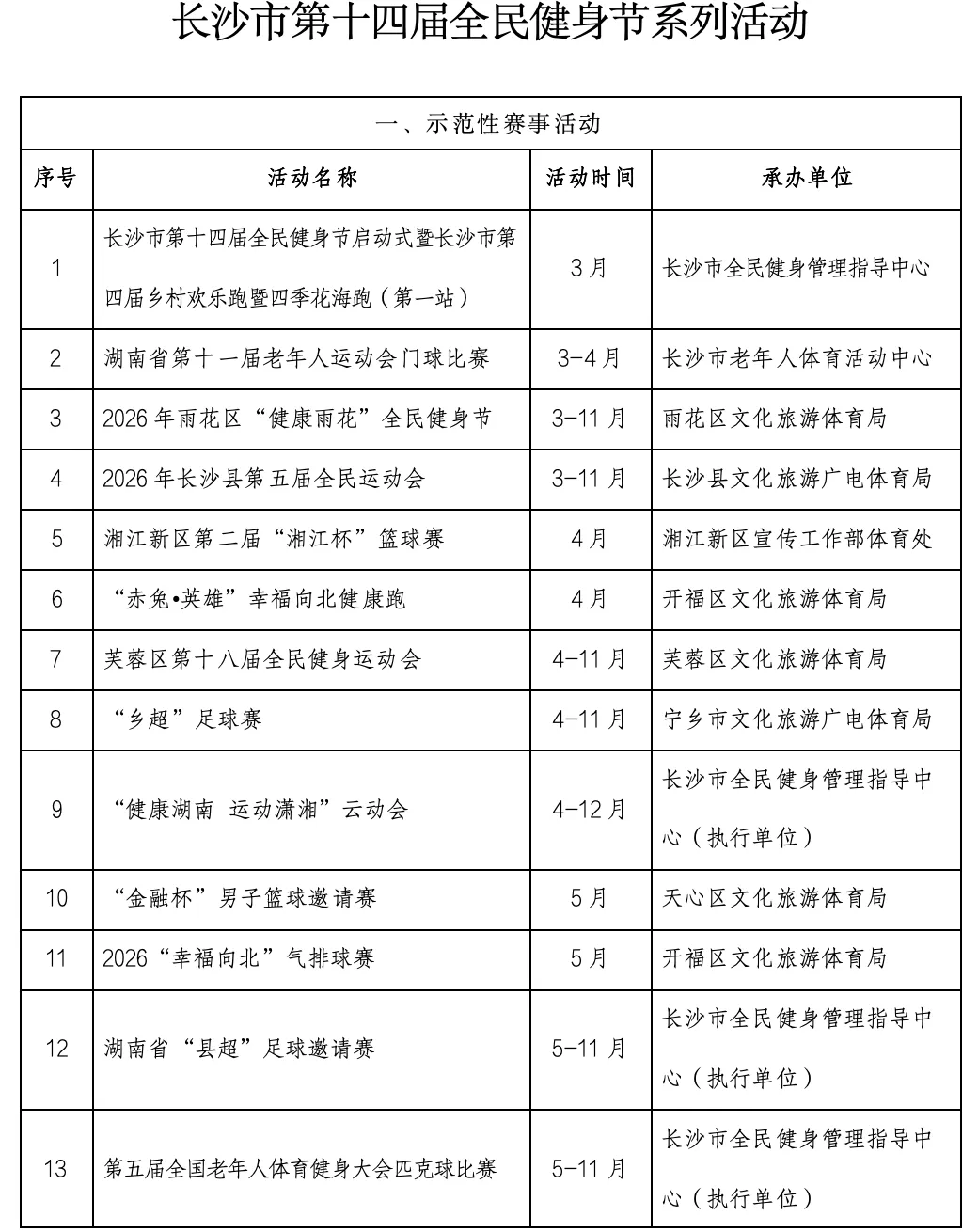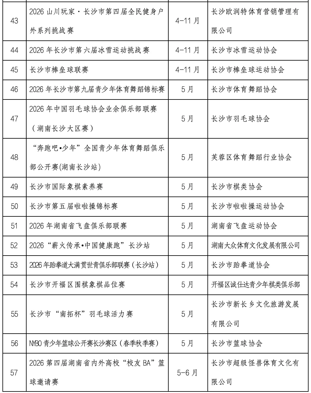 2月27日,记者从长沙市体育局了解到,《长沙市第十四届全民健身节系列活动实施方案》正式发布,95项赛事活动贯穿全年。活动由长沙市体育局、长沙市体育总会主办,各区县(市)、体育社会组织纷纷参与,掀起全民健身热潮。