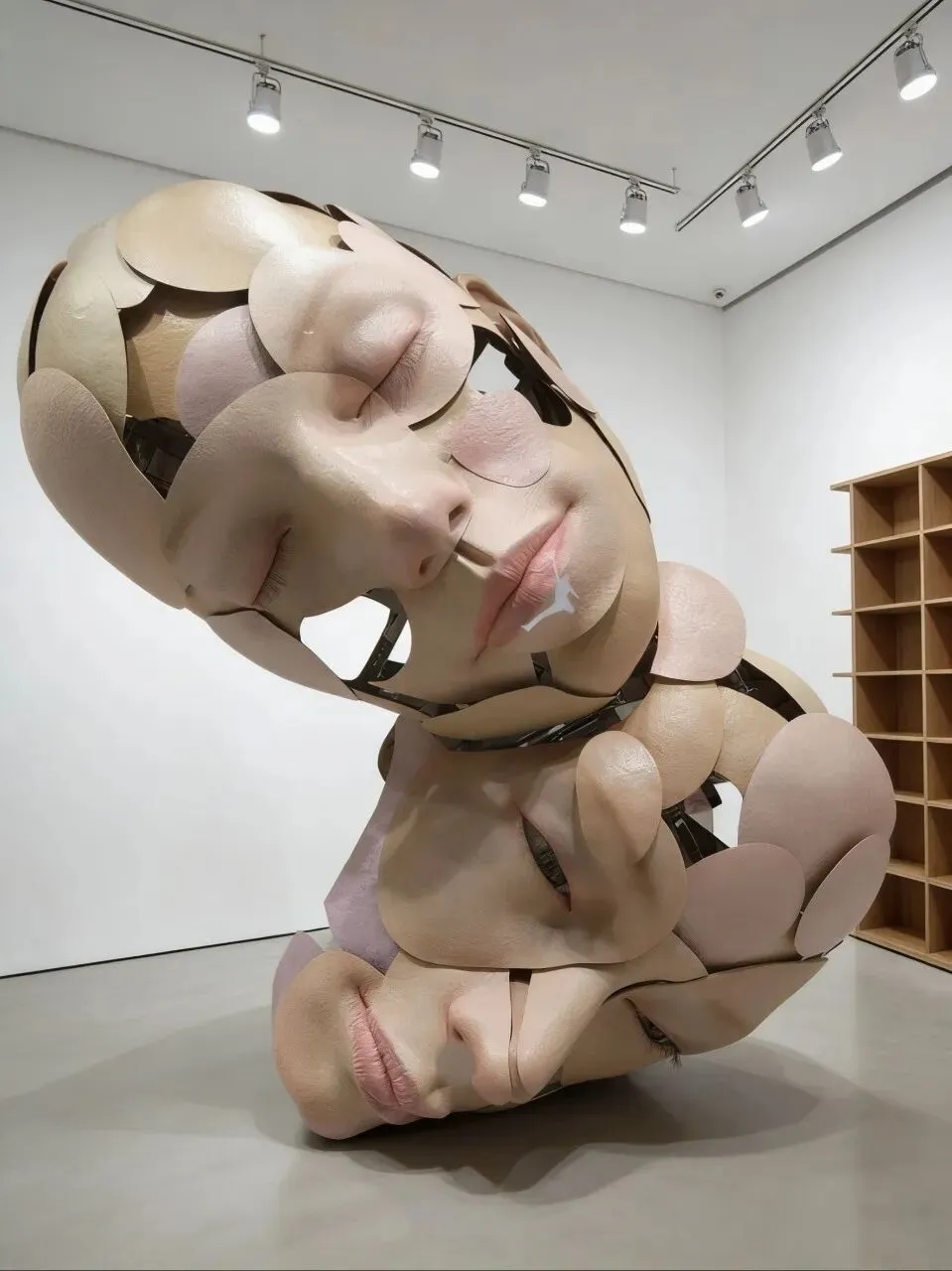它由无数张不同肤色、不同表情的“脸片”组成,有的闭合,有的微张,像我们在社交媒体上精心挑选的每一张自拍,也像我们在不同人面前扮演的不同角色。