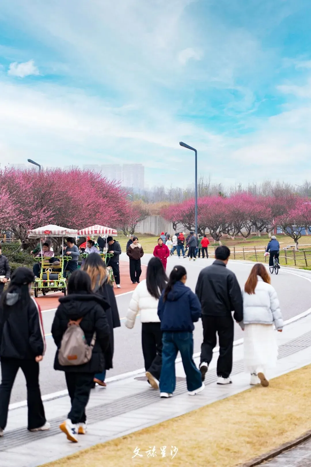 核心赏梅区在北部沙滩公园,从万明路停车场入口进去就能看到。最佳观赏期一直持续到3月上旬,现在去刚刚好。
