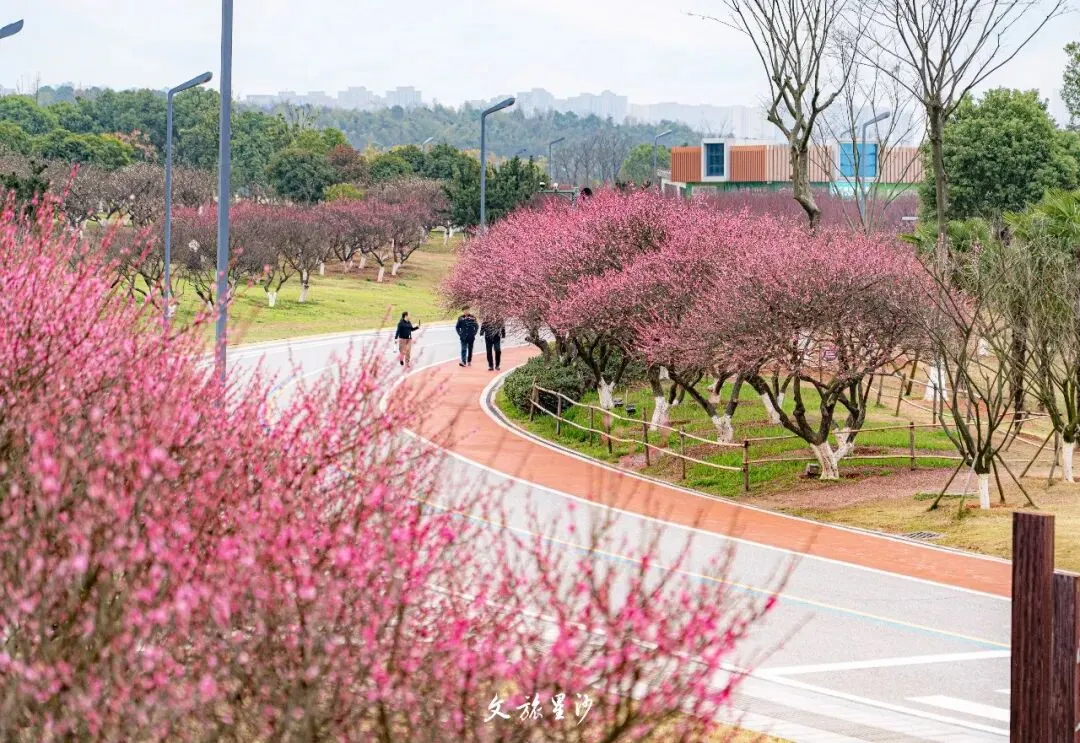 松雅湖的春天,是从一朵梅花开始的。湖畔2100余株红梅、美人梅已经悄然绽放,远望如同一片深粉色的云霞,美得像画。