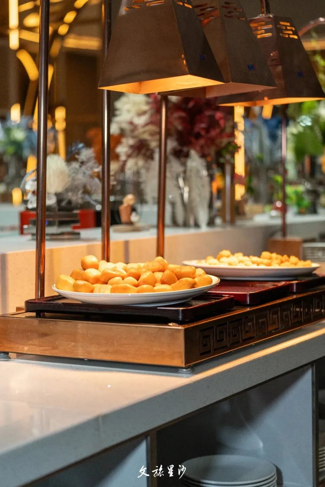 泡完温泉可以去自助餐厅补充能量,金黄酥脆的炸点、暖心暖胃的中式热炒……想吃什么就拿什么。