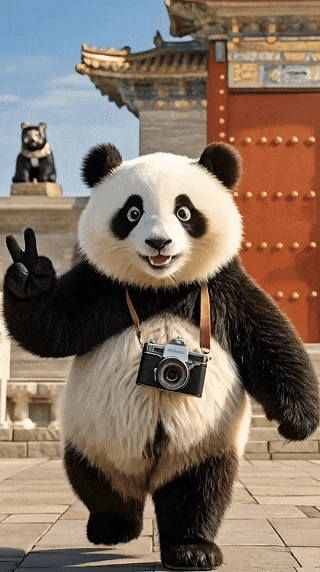 入口处汉服 NPC+熊猫 NPC 合影,发朋友圈集赞,完成后盖熊猫通关文牒;