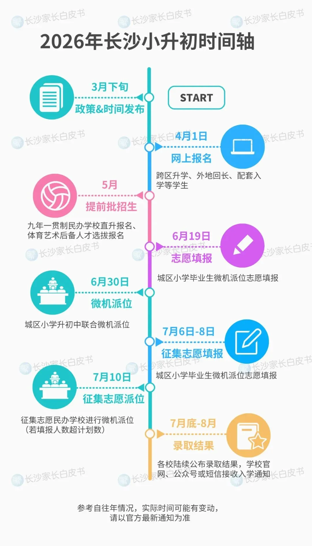 每年3月下旬左右,长沙市教育局会发布当年最新的中小学入学政策。长沙小升初近些年的政策都比较稳定,以全员派位为主,但咱们还是要了解最新政策,关注下具体的派位学校、跨区分组情况、配套楼盘等,做好准备、做到心中有数。