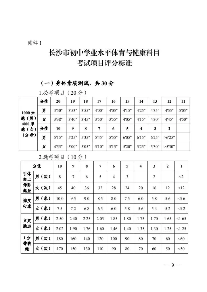 2026年体育中考具体的考试方案和评分标准已经发布,大家可以提前练习准备。