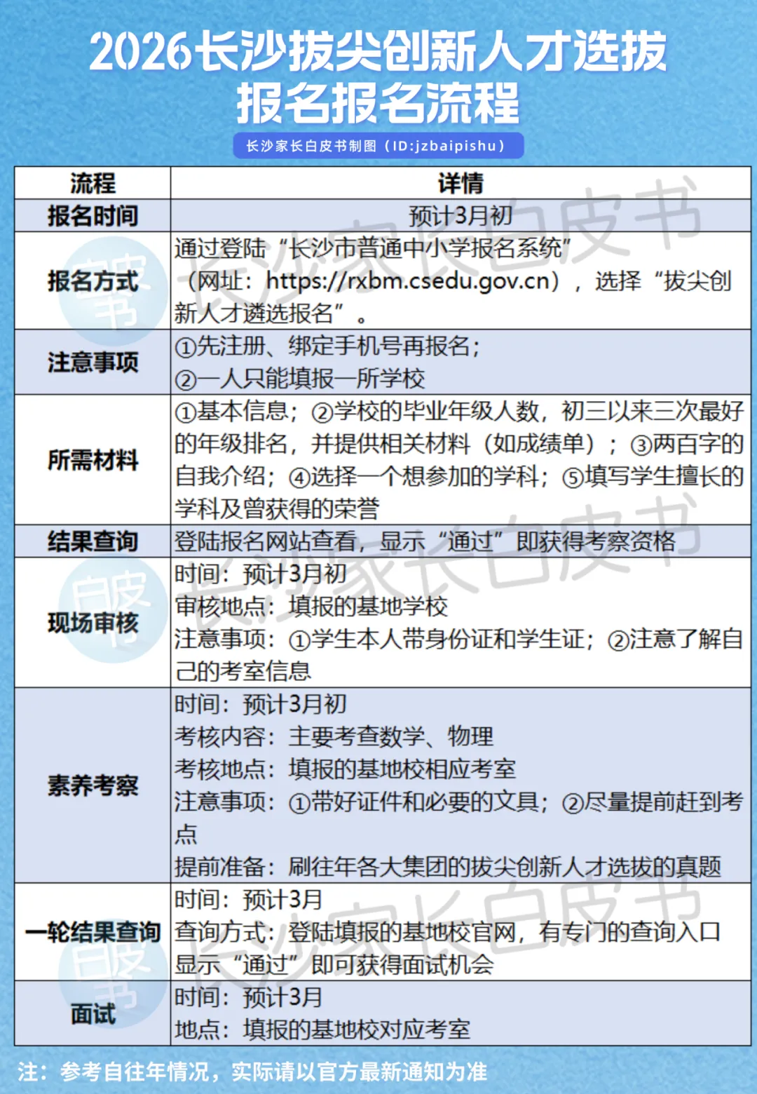 长沙的拔尖创新人才选拔,大家可以理解为四大和麓山、南雅的五大学科竞赛方向的“自主招生”,有独立的招生指标。如果本身就在走竞赛路线的话,一定不要错过。