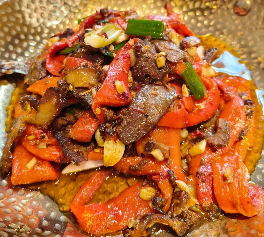 烧辣椒卤牛肉,卤牛肉不柴,应该用的都是腱子肉,口感很不错,红辣椒甜而不辣、清新肥厚挺好吃,加些大蒜干辣椒炒,调味恰到好处,下饭下酒都很不错。招牌鲈鱼,鱼肉肉质紧实,筷子一戳就戳出蒜瓣肉,更有特色的是这个鲈鱼里面放了腊八豆,使口感和味道更加丰富了,不仅下饭,腊八豆的气味也不讨嫌。
