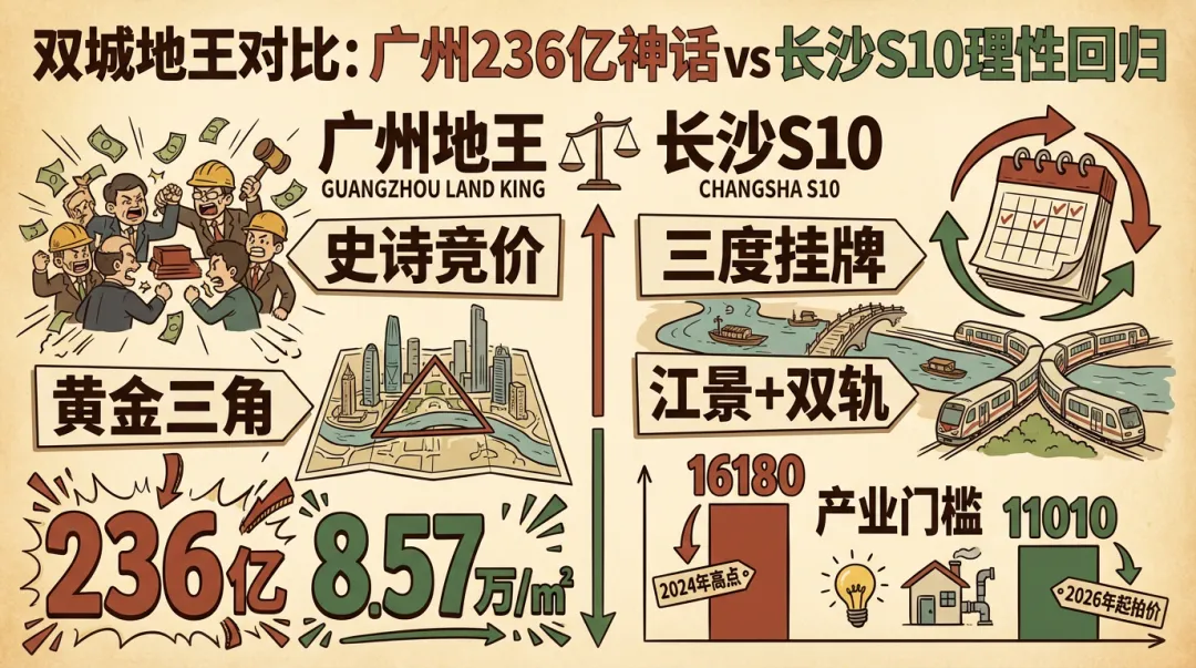 广州236亿地王的诞生,更多反映了一线城市核心地段优质资产的价值,而非普涨信号。长沙S10地块虽具备诸多优势,但在当前市场环境下,更需要理性定价和精准定位。