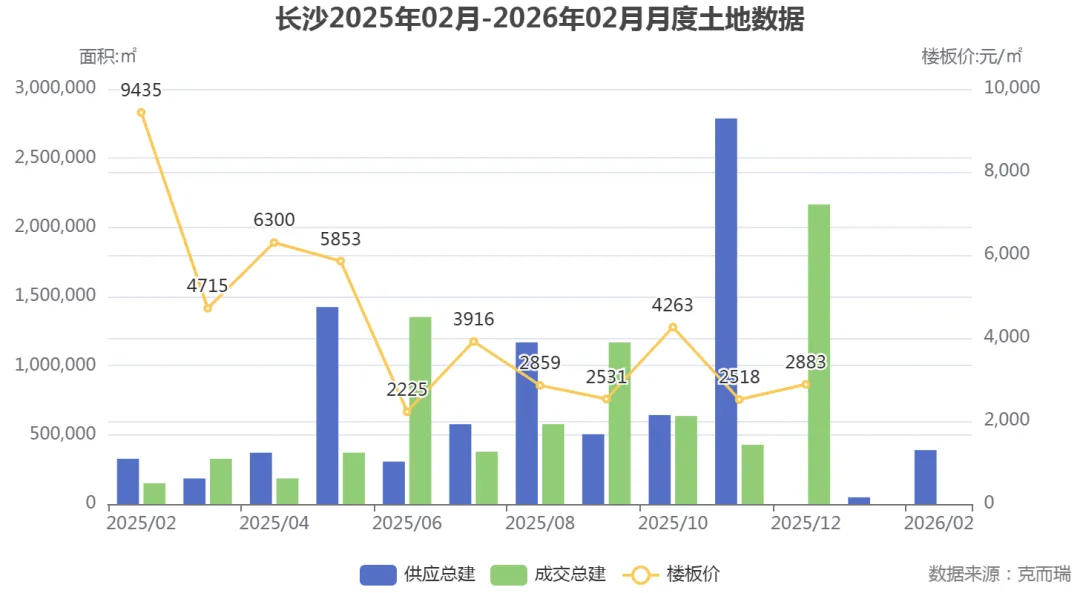 数据显示,长沙土地市场在2025年下半年楼面价整体走低,2026年初虽有小幅回升,但整体仍处于调整期,与广州地王频现形成鲜明对比。