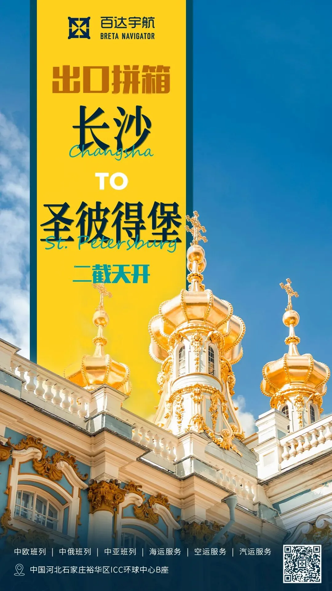 中欧班列、中俄班列核心运力加持,海运、空运、汽运多式联运互补。从长沙启程,立足石家庄运营中心,百达宇航以专业货代实力,让您的货物通达欧亚,畅行全球!