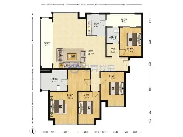 小高层+大四房+端厅大阳台,满足三代同堂的需求。