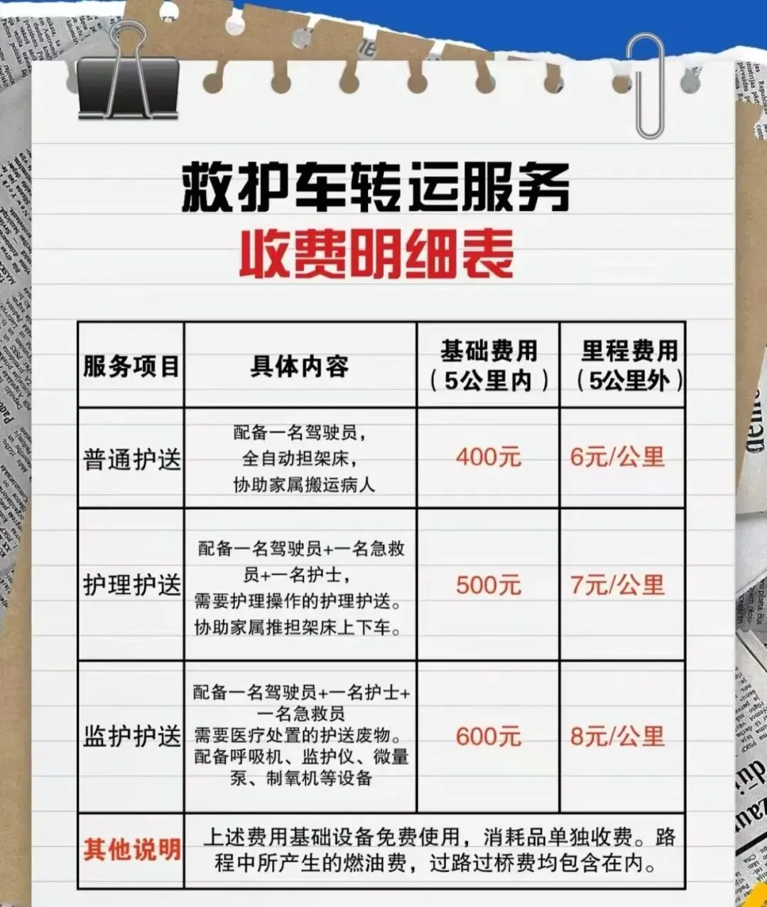 此外,病人的病情和所需的护理等级也会影响最终费用。如果病人需要重症监护或专业护理设备,费用可能会更高。急救车配备的设备(如生命监护仪、氧气供应等)和医护人员的服务水平也会影响总费用。通常,带有专业人员的救护车服务收费会相对较高。