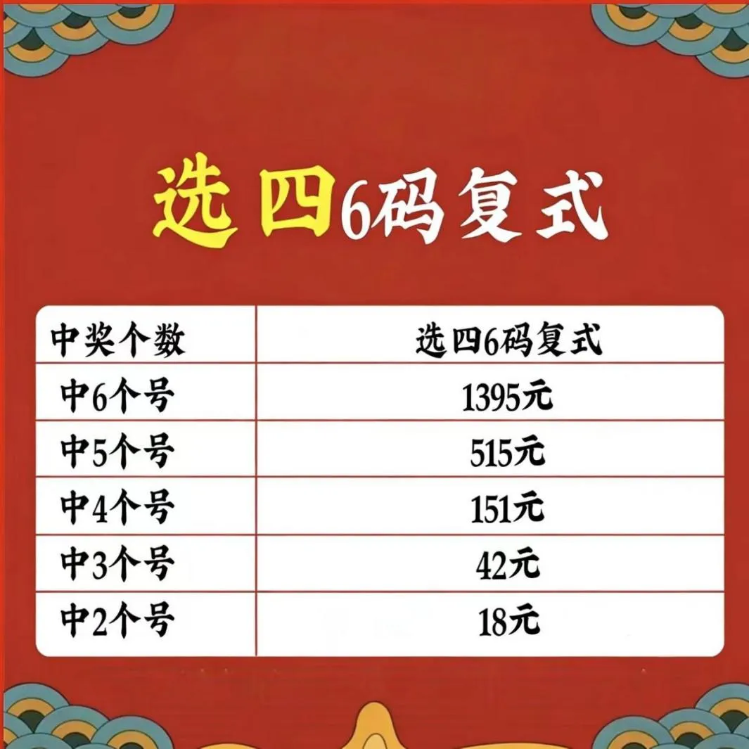 网红玩法安利:网红玩法“选四六码复式”!单注只要30元。6码中两个就有奖,最高单注可得1395元!