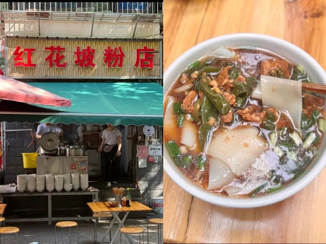 它藏在曙光中路与车站南路之间,名字普通到容易被人忽略——红花坡。但就是这条看似不起眼的老街,从清晨的一碗粉,到凌晨的一顿麻辣烫,完美安排了你的一日三餐加宵夜。
