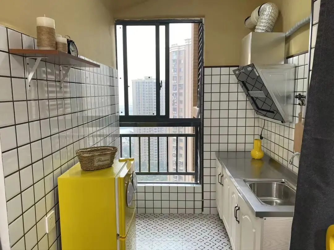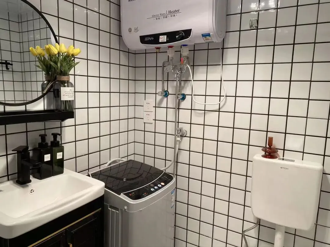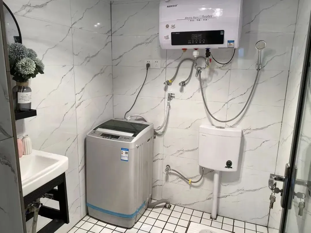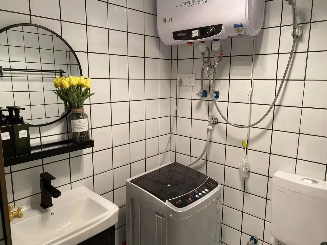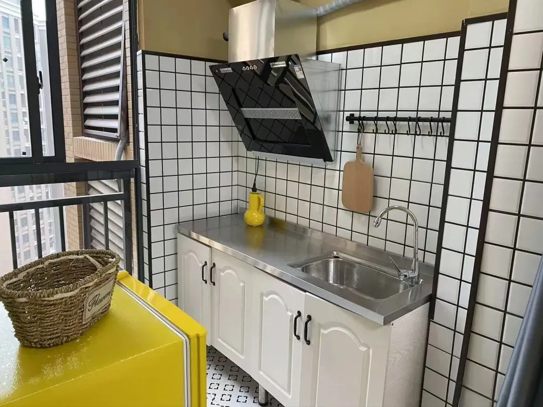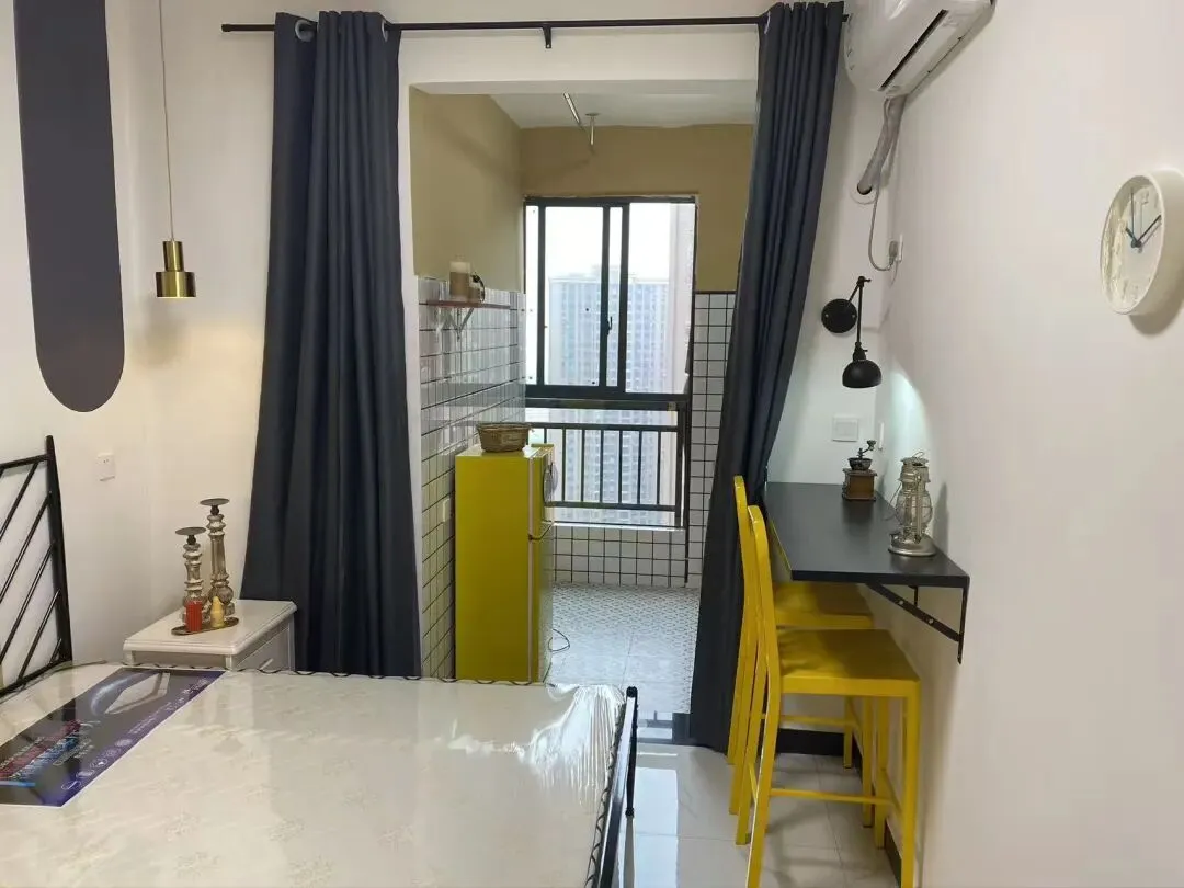 户型:一室一厨一卫带阳台 房子配备了小米空调 洗衣机 热水器 油烟机 冰箱等家电