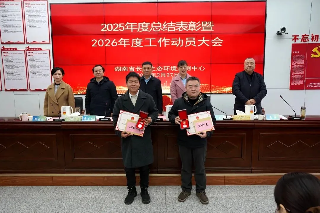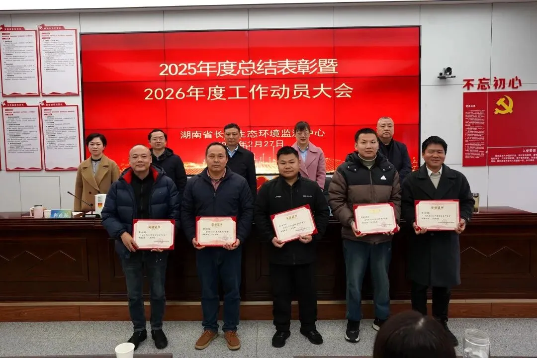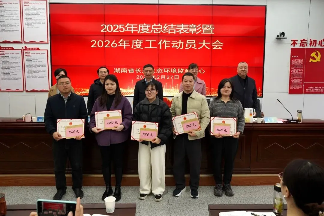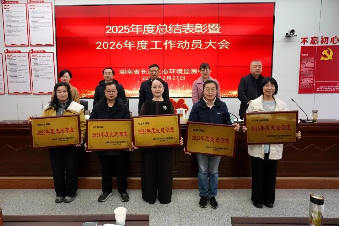 2月27日上午,湖南省长沙生态环境监测中心(以下简称“长沙中心”)召开2025年度总结表彰暨2026年度工作动员大会,旨在回顾过去一年的奋斗历程,表彰在各个岗位上涌现出的先进典型,激励全体干部职工凝心聚力开启生态环境监测事业高质量发展的新征程。中心党委书记、主任吴坚出席会议并讲话,中心党委委员、副主任邹晓颖主持会议,中心班子成员及全体干部职工参加。