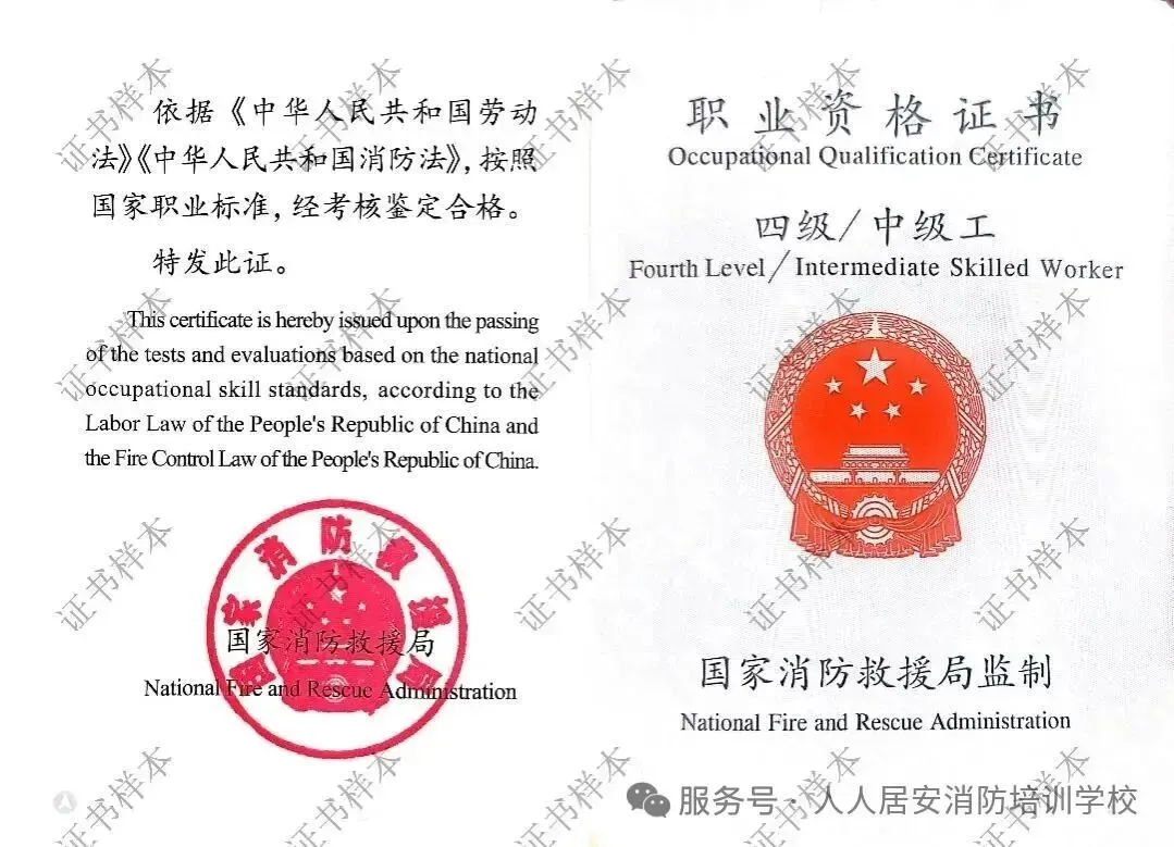 理论考试和实操考核成绩均合格后,获取由消防行业职业技能鉴定指导中心颁发的相应等级消防设施操作员国家职业资格证书。学校可协助取证的学员申领国家职业技能培训补贴(具体申领流程视当地人社部门规定,目前湖南地区补贴标准为:中级1500/人)。