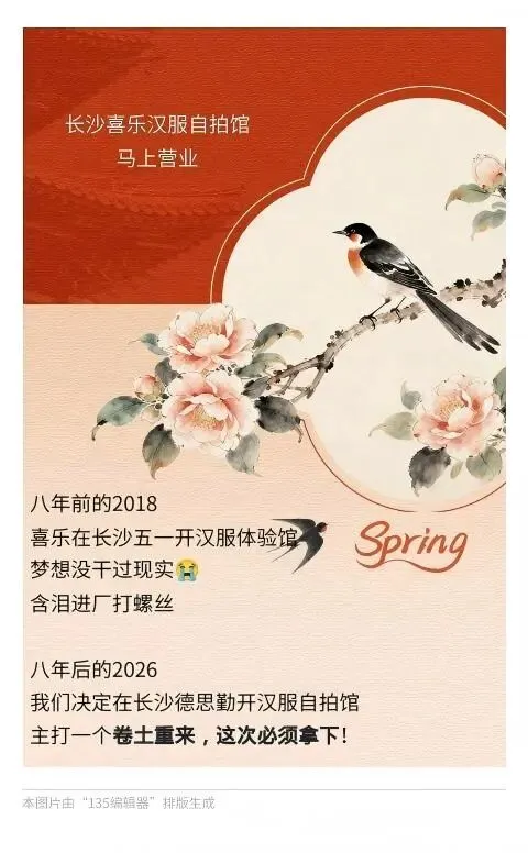 回望这8年,其实还蛮感慨的,忍不住想如果那时候没有闭店,坚持做很多年会怎么样。不讲不讲,人生没有回头路,任何选择都有遗憾,把握住当下就好了。从2018年五一广场的青涩小店,到现在即将开业的全新门店;从当年的懵懵懂懂,到现在的从从容容;我们对汉服的热爱始终没变,初心依旧,开心(*^▽^*)。