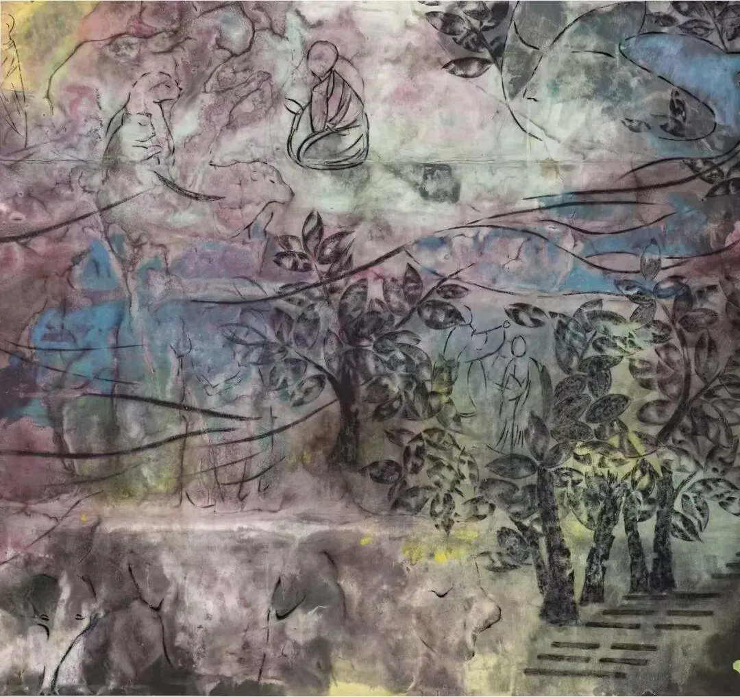 张健是一个很有宗教情怀的艺术家。首先她并不是执着于“信”,而是精神情怀。张健是通过她的一个又一个关于宗教主题创作来求解和回应这个终极问题的,就像现代派大师高更一样,他以艺术主题“我们从何处来”“我们是谁”“我们往何处去”来探索这个人类的终极问题。