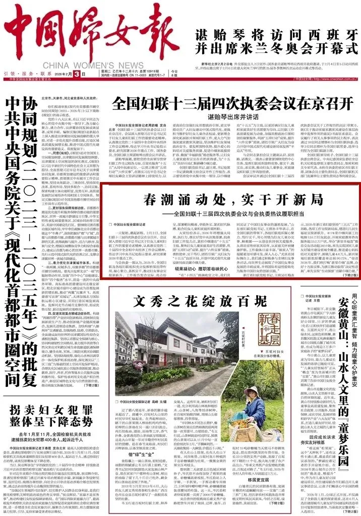 2月2日,全国妇联十三届四次执委会议在京召开。会议深入贯彻习近平总书记关于妇女儿童和妇联工作的重要论述精神,认真落实党的二十届四中全会和中央经济工作会议精神,传达学习中央书记处指示要求,研究部署2026年重点工作。