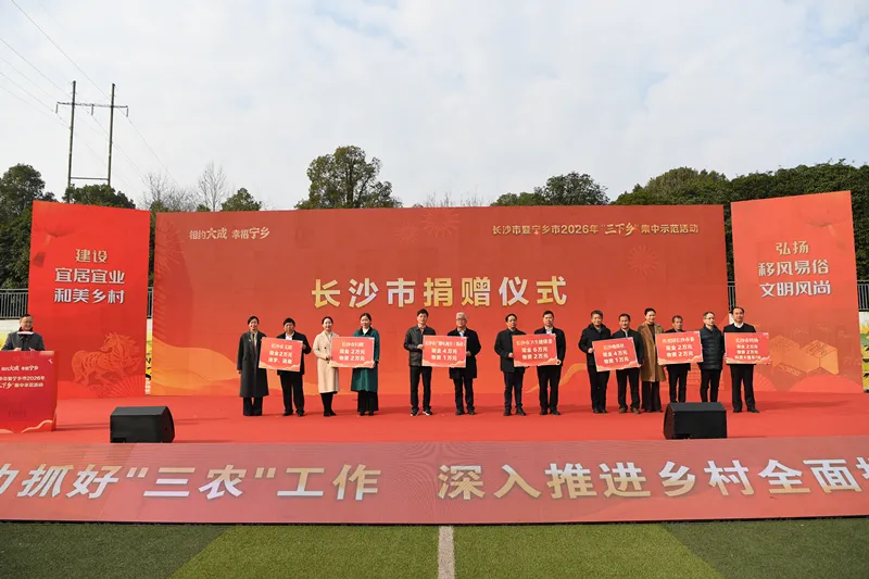 2月3日,长沙市暨宁乡市2026年文化科技卫生“三下乡”集中服务活动在宁乡市大成桥镇举行。本次活动由长沙市委宣传部、长沙市妇联等43家单位共同举办,长沙市委常委、市委宣传部部长伍贤运出席。活动围绕资金捐赠、文艺演出、医疗义诊、书写春联、普法科普、技术下乡等内容展开,为当地百姓送去实实在在的关怀与服务。