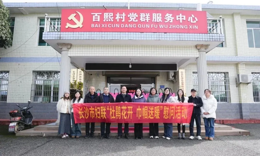 2月11日上午,长沙市妇联党组成员、副主席李艳清一行来到市妇联乡村振兴联点村—长沙县百熙村,开展“杜鹃花开 巾帼送暖”慰问活动,为村民带去了日用品、卫生用品等慰问物资。