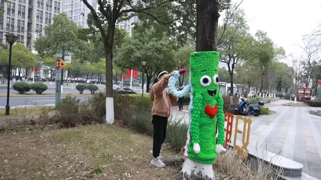 为营造温馨祥和的春节氛围,长沙妇联为长沙市妇女儿童之家的树穿上了毛衣……