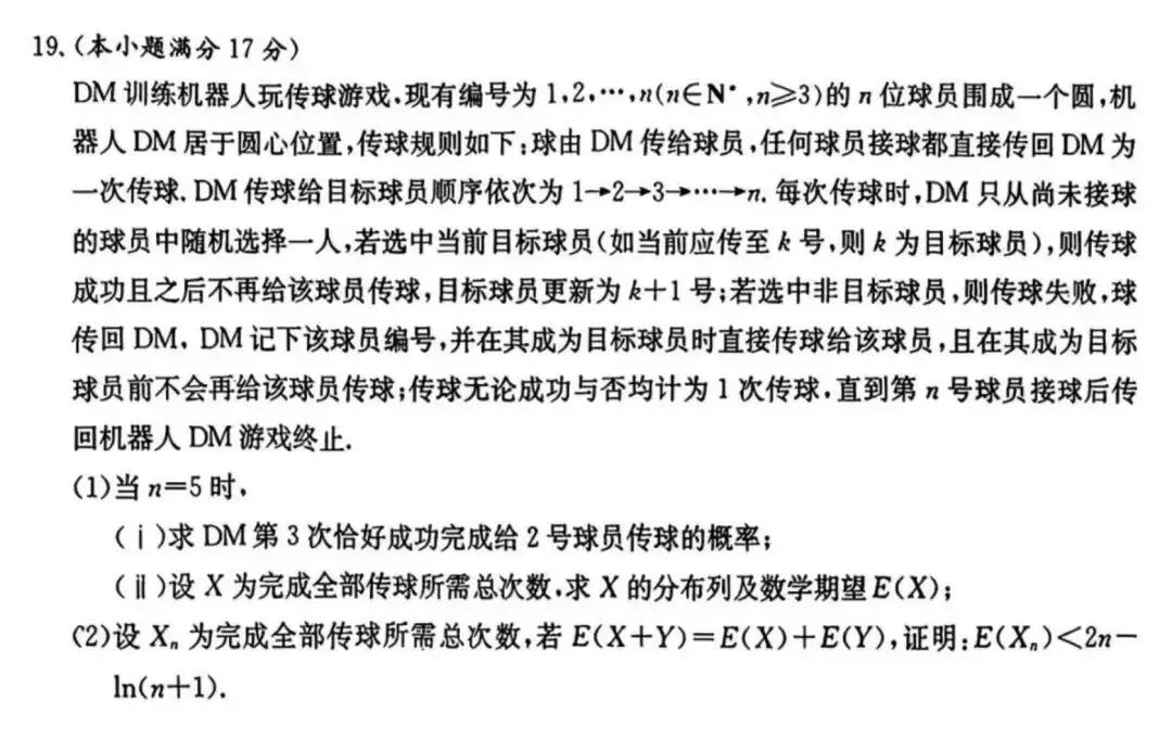 根据题意得 ,且 意味着编号为 的球员只传一次球,当且仅当编号为 的球员中编号为 的球员排在最后一位,所以