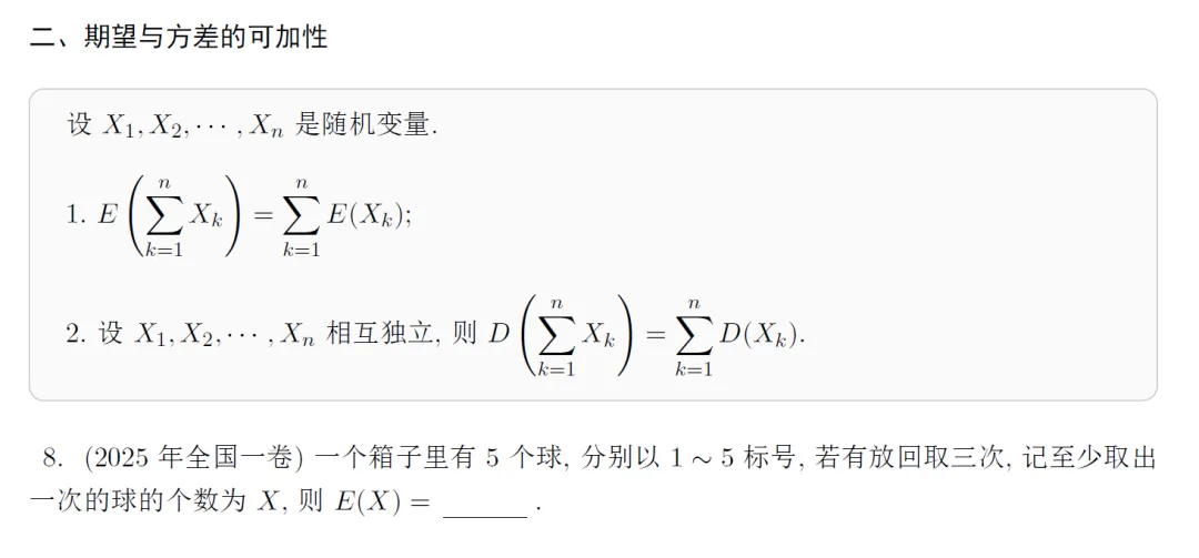 课程中与期望的可加性有关的部分讲义如下: