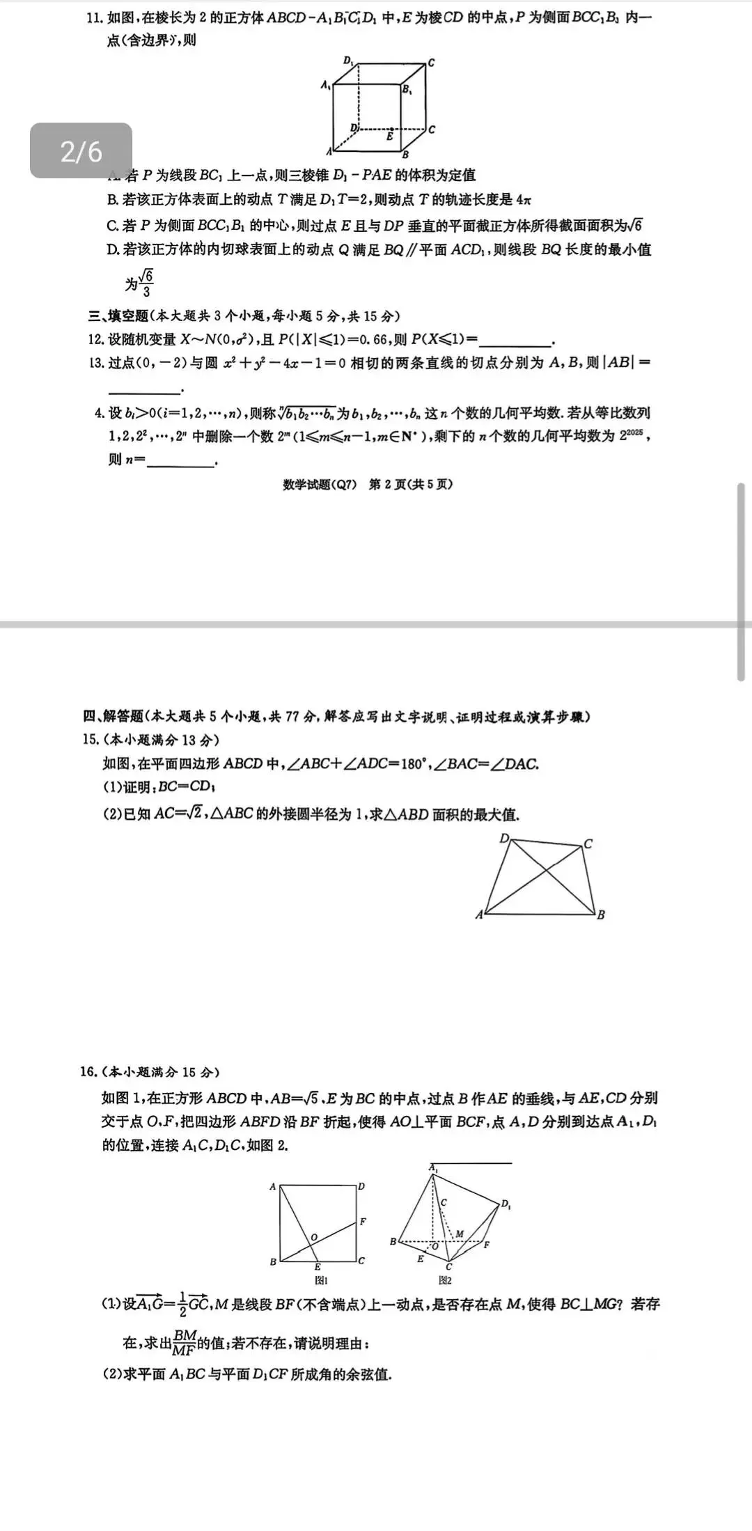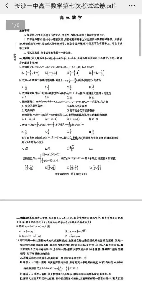 长沙一中2026届高三月考(七)(数学)