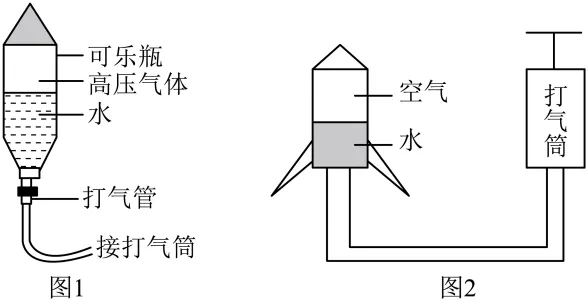 4.2025年4月24日是第十个“中国航天日”,物理社团的同学们制作了“水火箭”。如图是“水火箭”的简易原理图,使用打气筒向“水火箭”内不断打气,当内部气体压强增大到一定程度时,会使水从“水火箭”底部向下快速喷出,从而使“水火箭”升空。结合题中信息,判断以下说法正确的是()