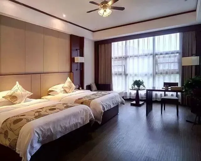 将汤里融嵌于其中,古韵传承以汉唐与民宿风为主,融入了自然人文学