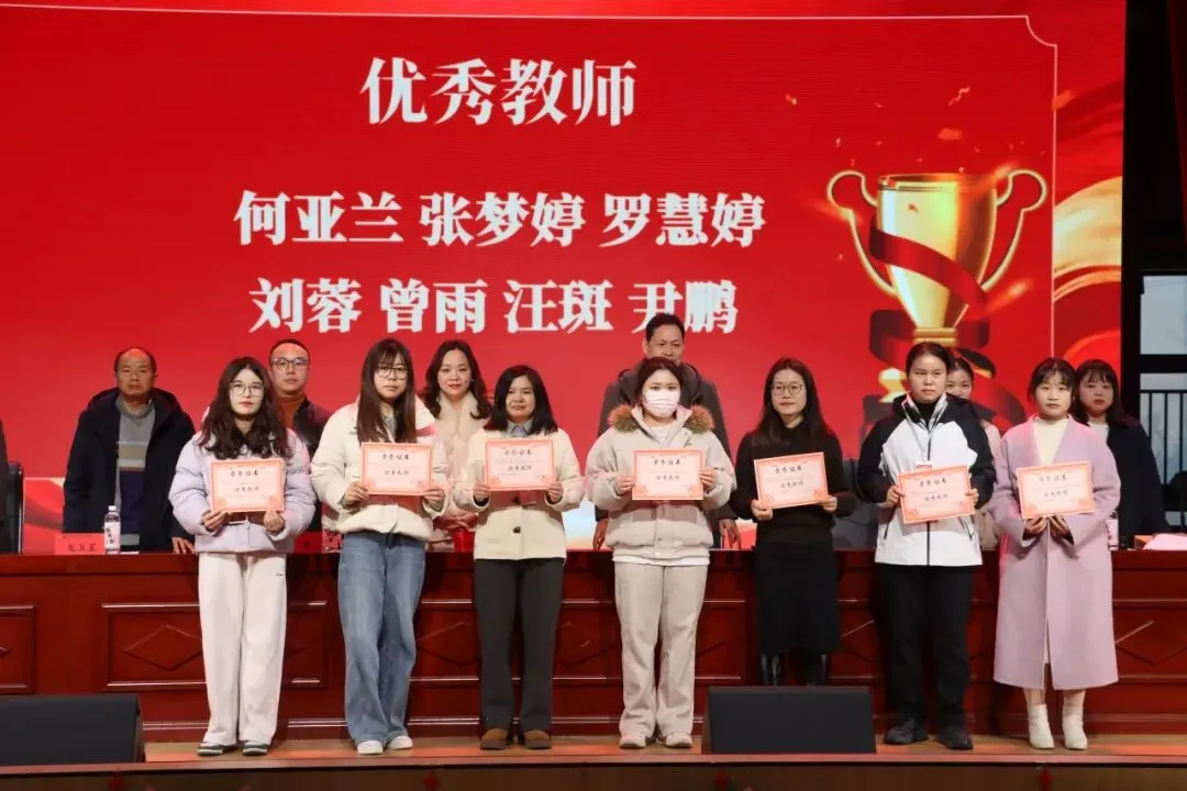 过去一学年,是学校凝心聚力、提质培优的关键之年。全校教职员工紧紧围绕立德树人根本任务,聚焦扩规模、提质量、强内涵,涌现出一批表现突出、成绩显著的先进集体和个人。校务委员人事督导处处长文利宣读了表彰后,校领导依次为“招生工作先进个人”“书香团队”“优秀指导老师”“竞赛能手”“优秀教师”“优秀教育工作者”“优秀班主任”等获奖者颁发荣誉证书以及奖金。