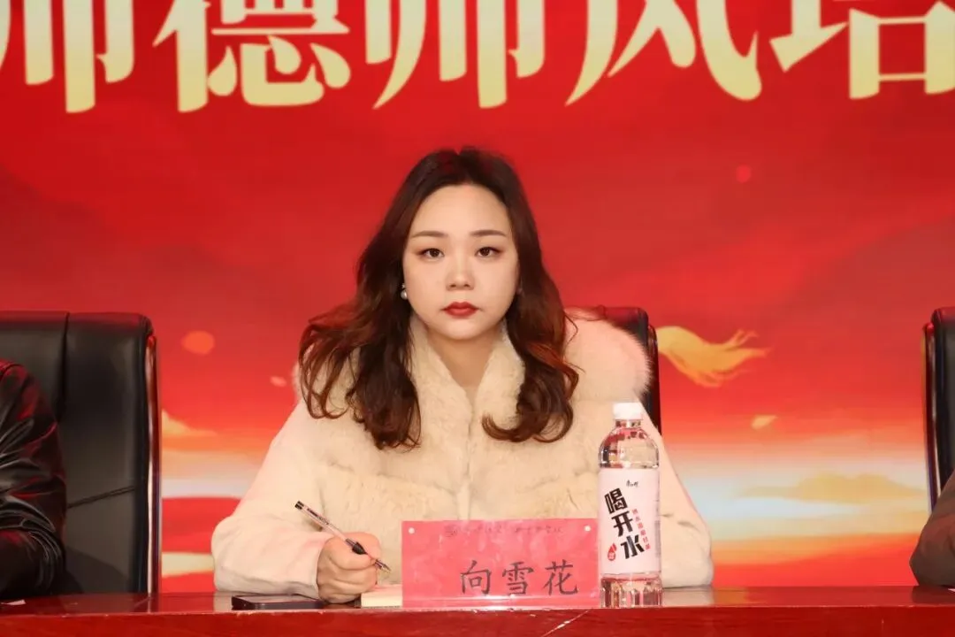 校长助理、团委书记谢钢的发言既有政治高度,又有情感温度,为全体教师指明了方向。师德铸魂,师风润心。让我们以德立身、以爱育人、以行践诺,共同守护风清气正的校园生态,真正成为学生为学、为事、为人的“大先生”。