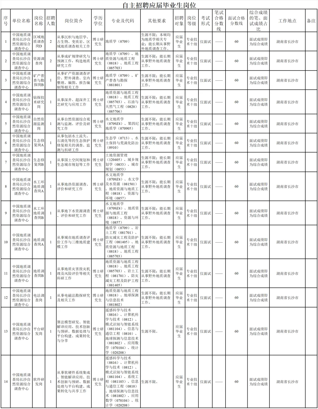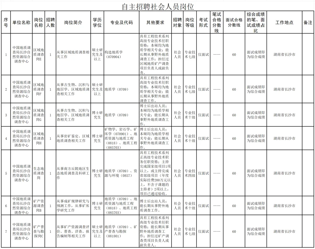 根据事业发展需要,中国地质调查局长沙自然资源综合调查中心(简称“长沙中心”)开展2026年度第一批公开招聘工作,招聘应届毕业生及社会在职人员36名。有关事宜公告如下: