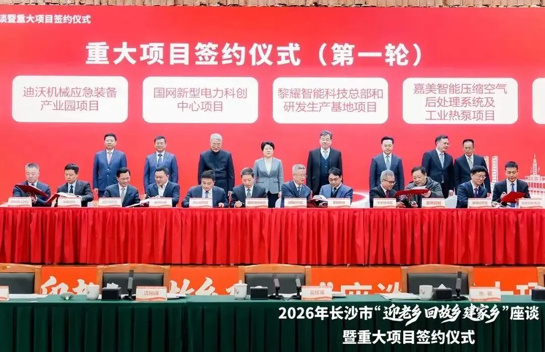 新春伊始,乡情聚势。“迎老乡 回故乡 建家乡”座谈暨重大项目签约仪式,以乡情为纽带联结海内外湘商湘才,以项目、人才夯实长沙发展根基。重大项目落地、招商智囊团组建、投资机遇释放,将持续为长沙注入强劲动能,助力城市产业升级与创新发展。