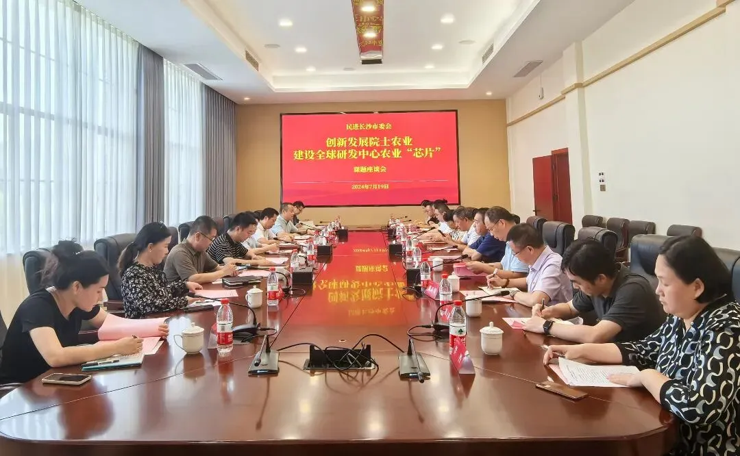《创新发展院士农业 建设全球研发中心农业“芯片”》是中共市委指定民进长沙市委会完成的专题调研课题。7月19日下午,民进长沙市委会主委、长沙市人大常委会副主任李平率课题组一行八人赴中国科学院亚热带农业生态研究所、岳麓山种业创新中心、湖南农业大学等高校科研院所开展调研。中国工程院院士、中国科学院亚热带农业生态研究所首席研究员印遇龙,湖南农业大学党委副书记陈光辉,岳麓山种业创新中心常务副总经理刘志贤等热情接待了课题组。课题组一行首先来到岳麓山种业创新中心调研,刘志贤对课题组的到来表示欢迎并安排工作人员介绍相关情况。种业创新中心由湖南省政府与中信集团共同投资,联合种业领域产学研优势单位共建的新型研发机构,致力发展成为国家种业技术协同创新中心、国家种业科技成果转化促进中心和国际种业技术交流服务中心,是岳麓山实验室重要组成部分。课题组先后参观了展厅、国家级分子育种创新服务平台实验室,详细了解本部运营中心、专业研究中心、成果孵化转移中心三大板块的运营情况。李平就中心知识产权管理、引才引智等情况与种业创新中心主要负责人进行了交流。