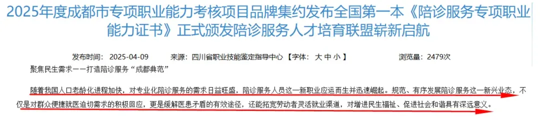 2025年,成都等地率先试点陪诊师,推动职业标准化、规范化。
