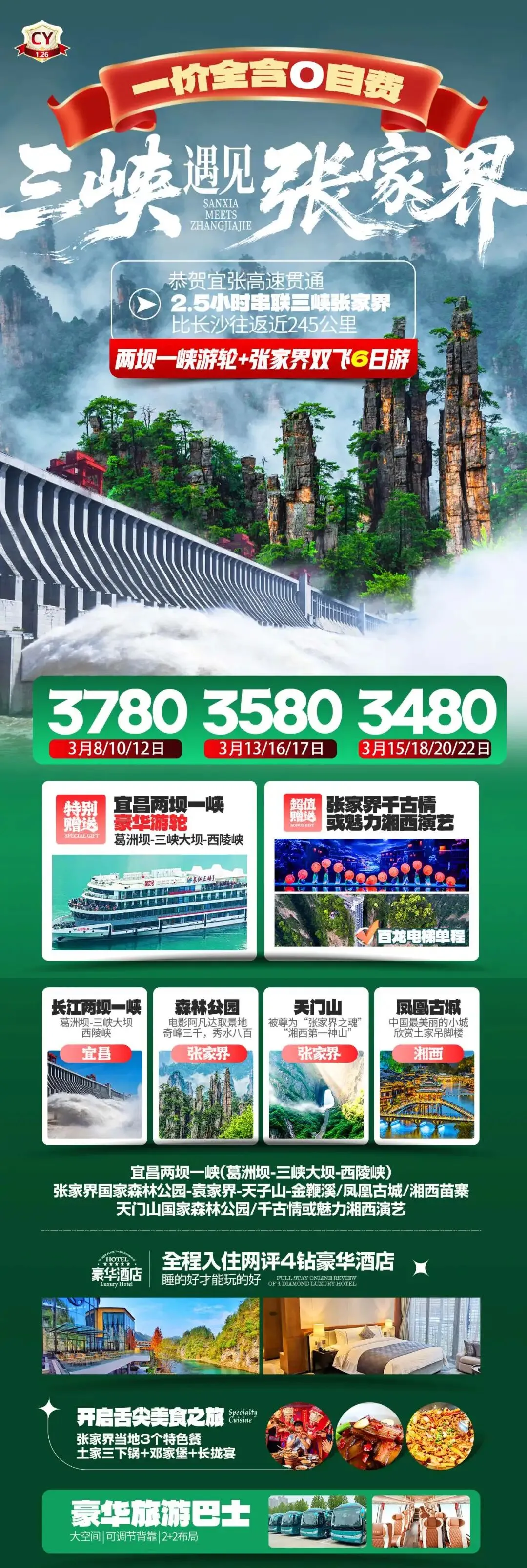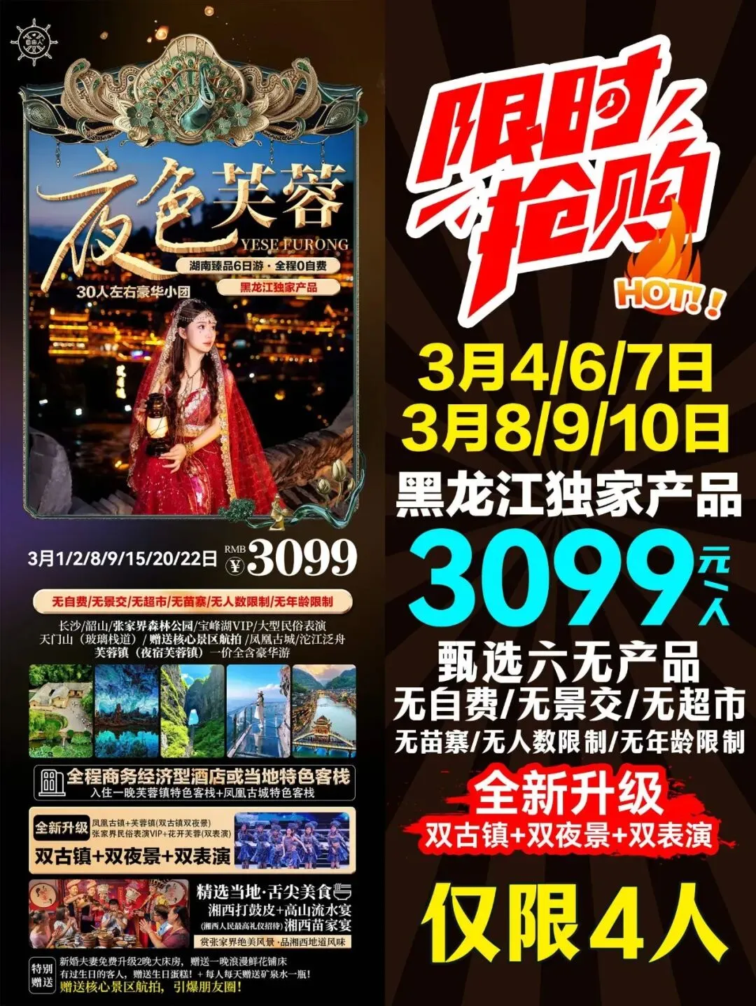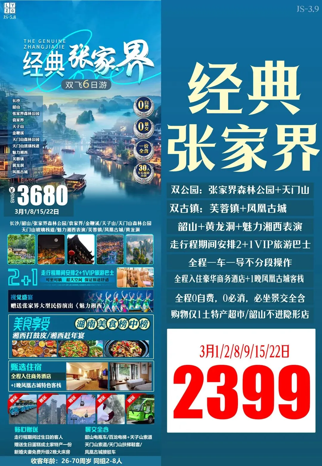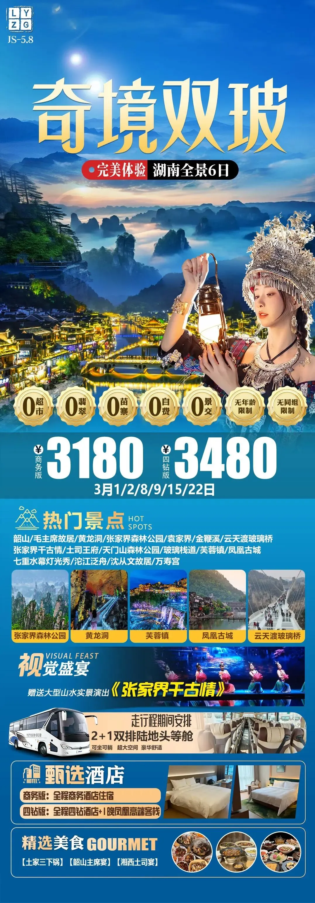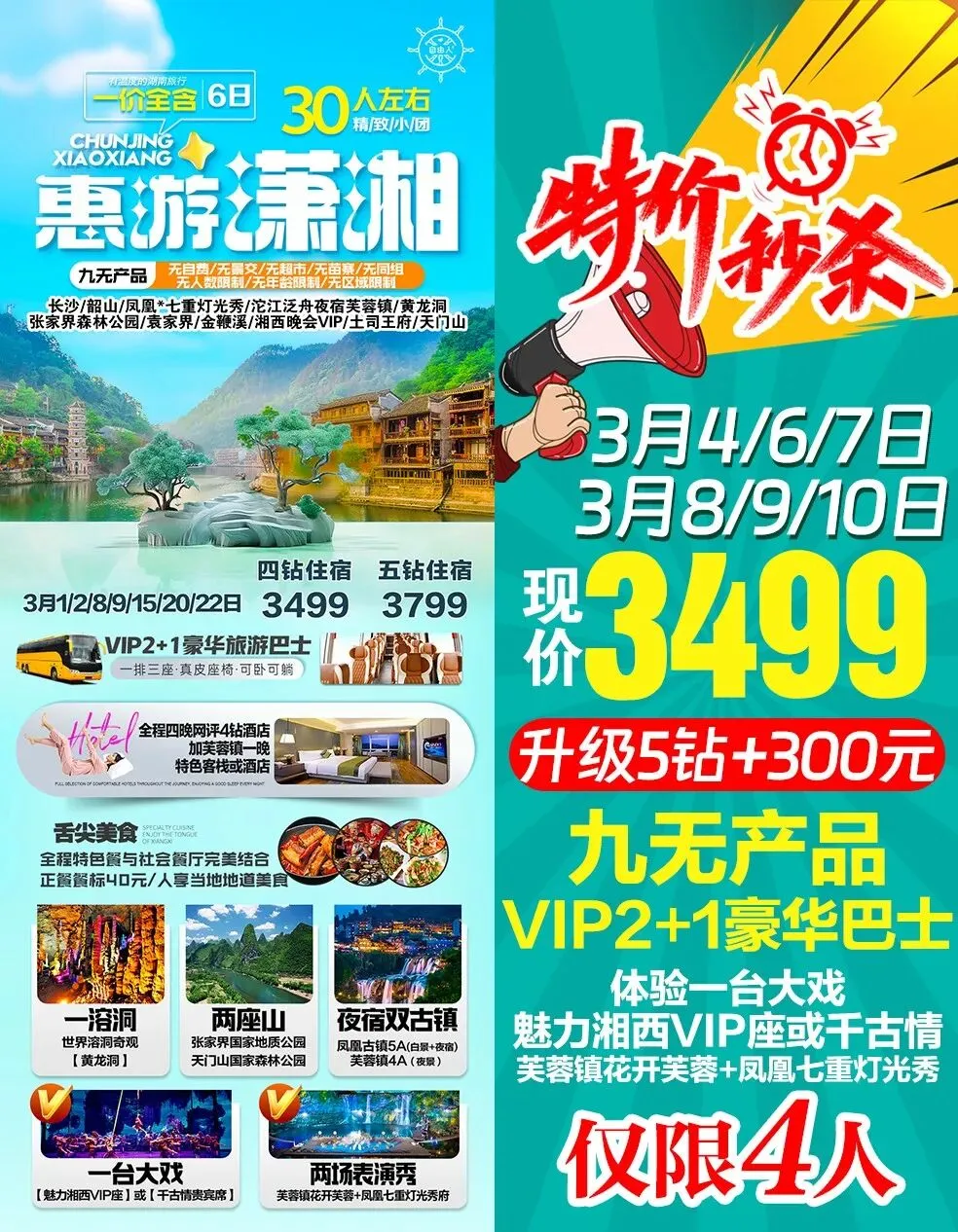 >3月游张家界◎长沙/韶山/凤凰古城/金鞭溪/芙蓉镇/黄龙洞/张家界森林公园/天门山……