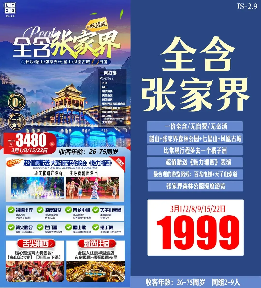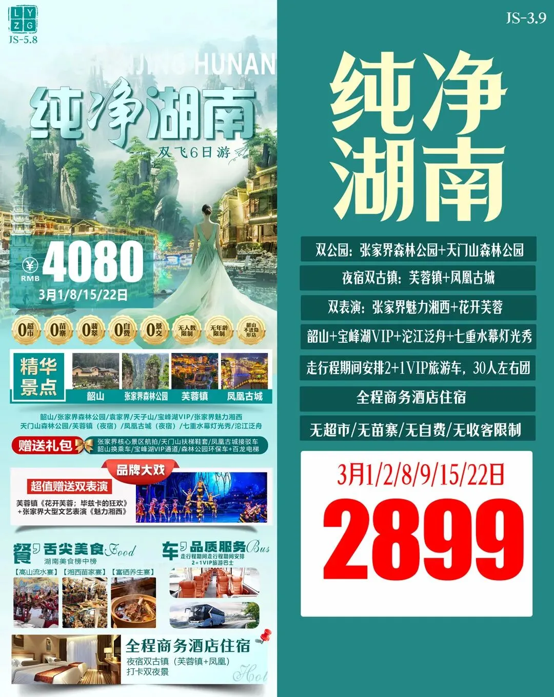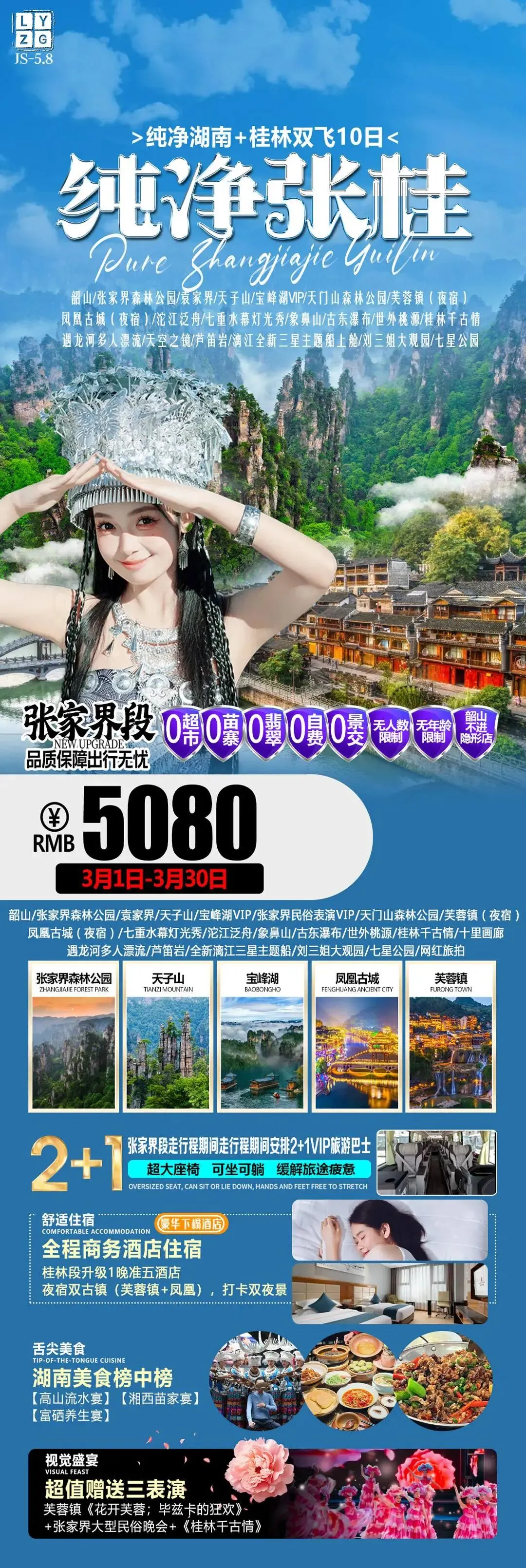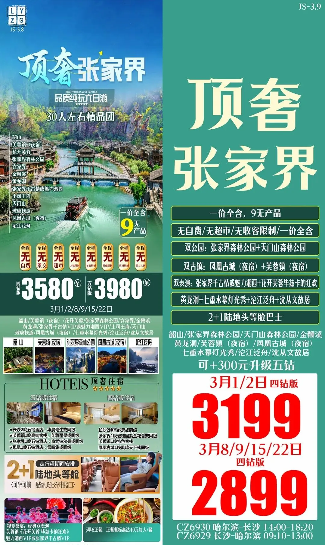 >3月游张家界◎长沙/韶山/凤凰古城/金鞭溪/芙蓉镇/黄龙洞/张家界森林公园/天门山……