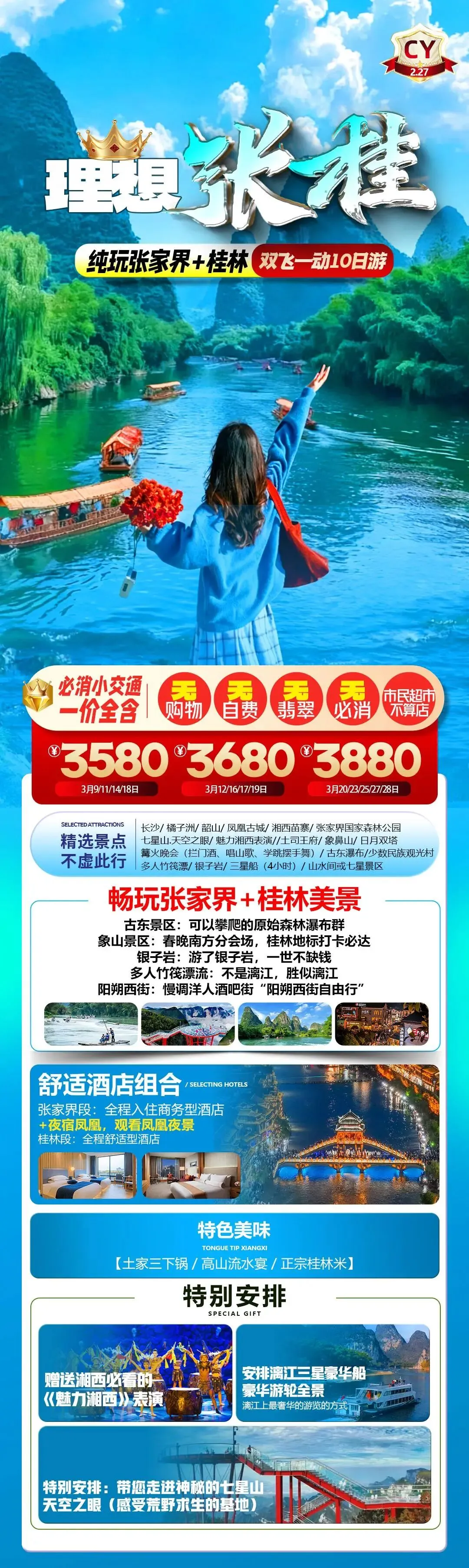 3月游张家界◎长沙/韶山/凤凰古城/金鞭溪/芙蓉镇/黄龙洞/张家界森林公园/天门山……
