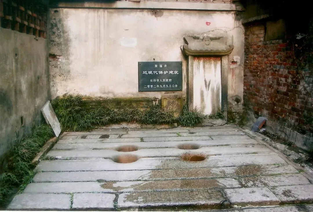 〖注〗据1948年统计,长沙市区共有水井3446囗。自有城池始,市与井就连在一起,并因此成了老城街坊赖以维系的象征,以井名街,更确立了井在街坊中地位。水风井,原名水丰井,地片名,亦社区名,位于蔡锷北路南段。1988年发现古井,井内出土一件青瓷瓶,上有唐代年号。古井巷位于下黎家坡德厚里附近,原为古遐龄庵水井。遐龄庵建于清康熙年间,光绪年间重修。螃蟹井位于营盘路的一段,相传井底有一石头,形似螃蟹,浸水从石底涌上,蟹甲呈金黄色,故此街又名金甲坊。泉嘶井位于西文庙坪附近,传说晚间井中发出嘶鸣之声。此外还有很多井以姓氐为名,也成了街巷名。小西门有条老街,名路边井,昔日街边有一井,水质清冽。古稻田有条老街叫桂花井,清光绪《善化县志》载:“桂花井,城东稻田水,面轻沤微如雨点。”走马楼东侧老街青石井,因用青石砌成而得名,相传为明吉藩府汲水用井。北起织机街,南止小瀛洲,有两并行的老巷,一为观音井、一为桃花井。东茅街南侧的丰泉古井,以井名而街名,丰盈里、丰盈西里也由此井衍生而来。鱼塘街内聚福园,以附近的聚福井而得名,聚福井由“吉府井”雅化而来,曾是明吉藩府汲水用井。