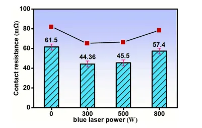 图9. 不同蓝光激光功率下接头的接触电阻。
