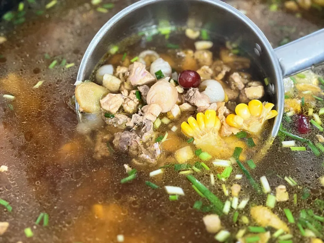 中餐:蚂蚁上树、豆角米炒肉泥、虫草花老鸭汤、软米饭