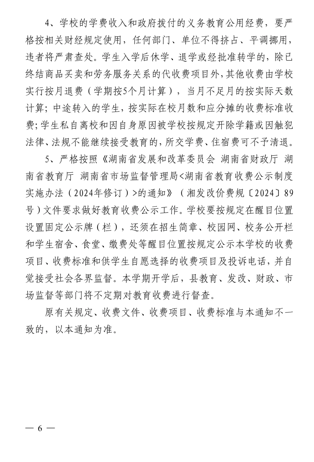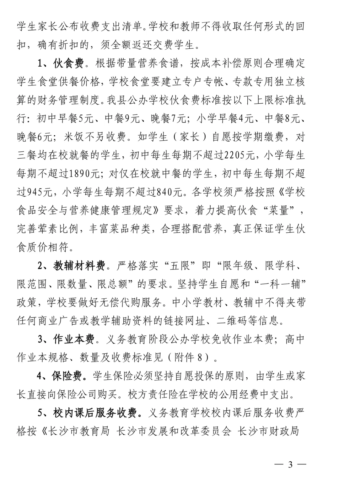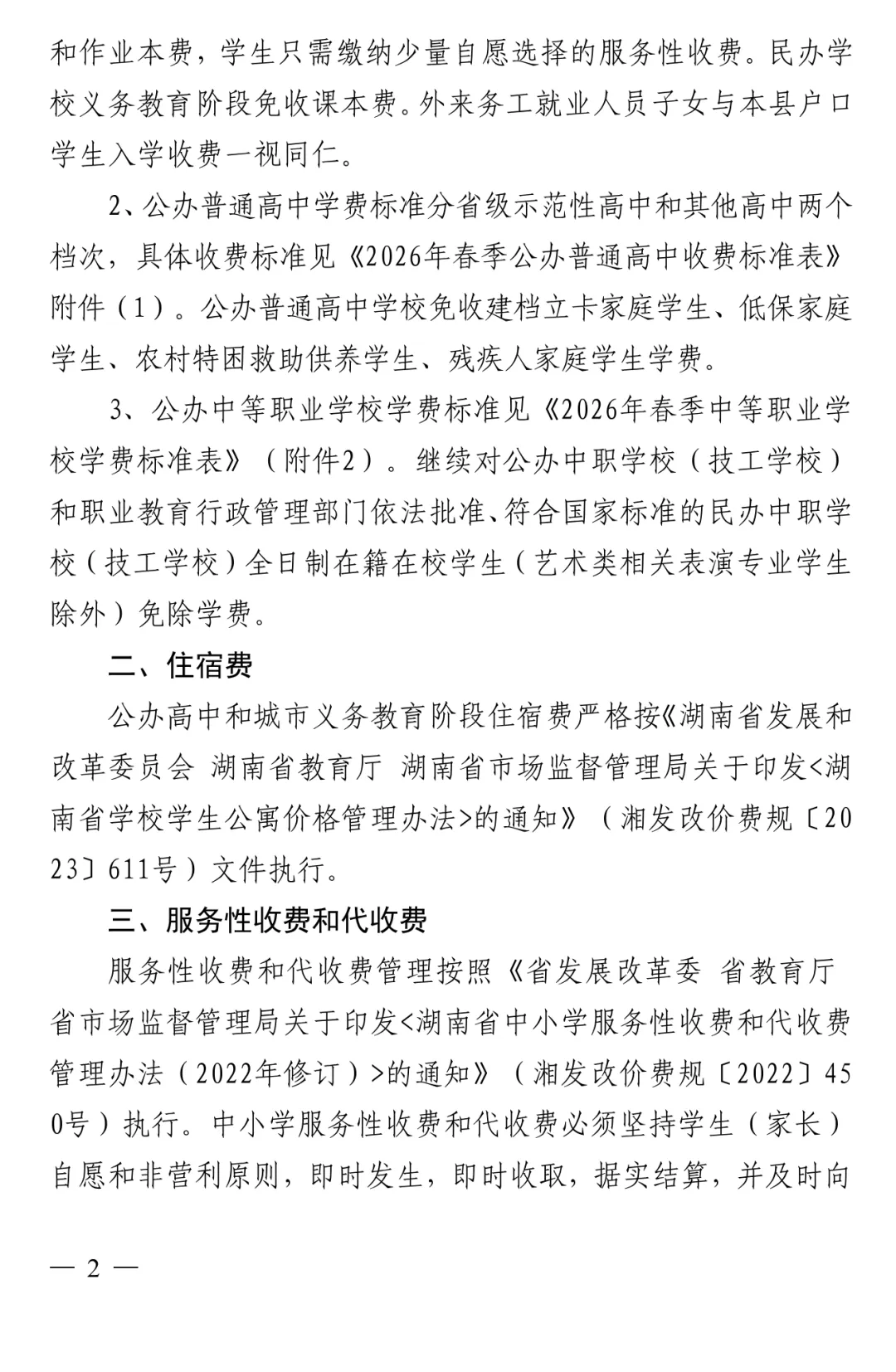 >长沙县2026春季开学收费文件公示