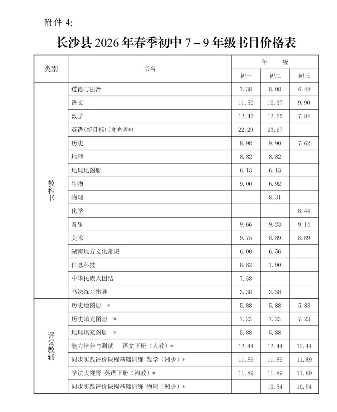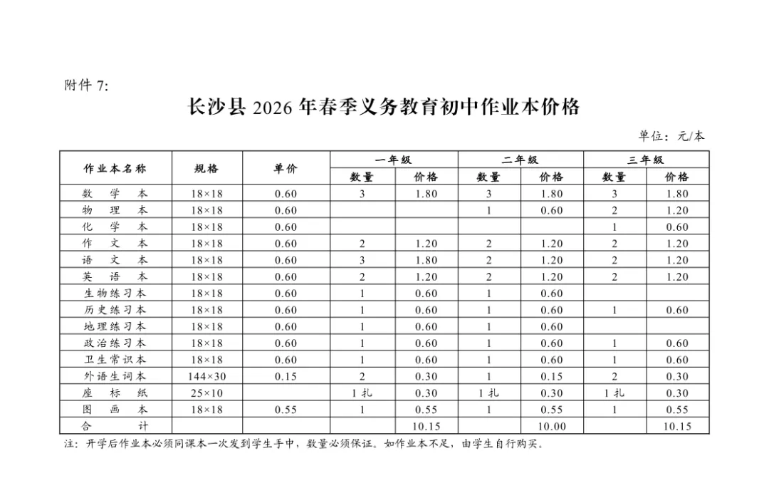 长沙县2026春季开学收费文件公示