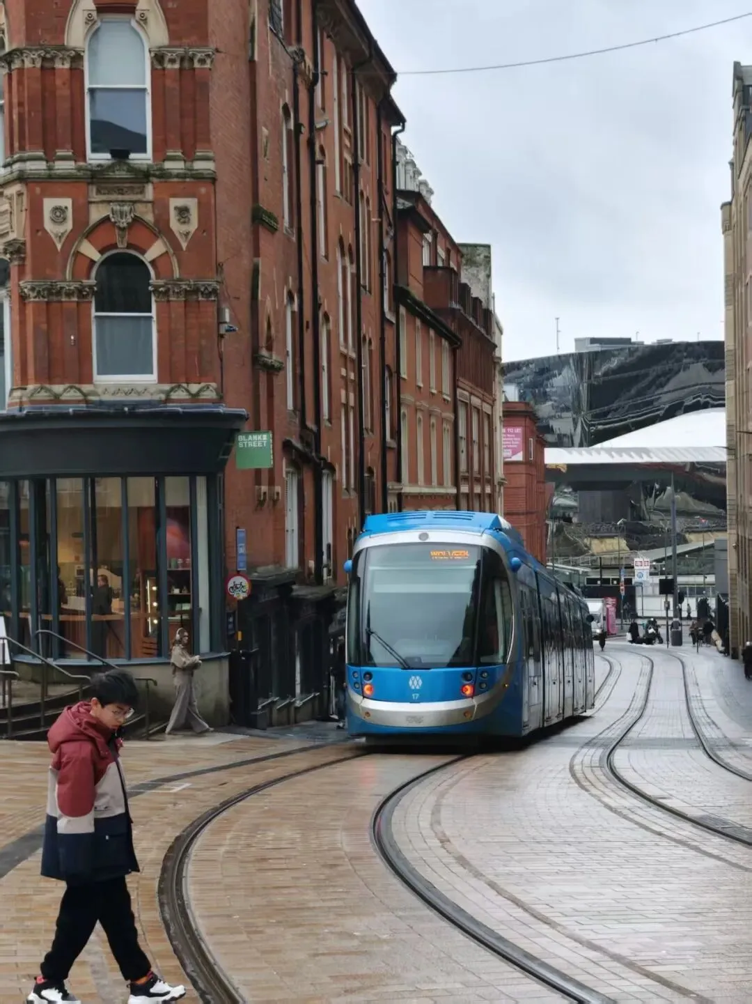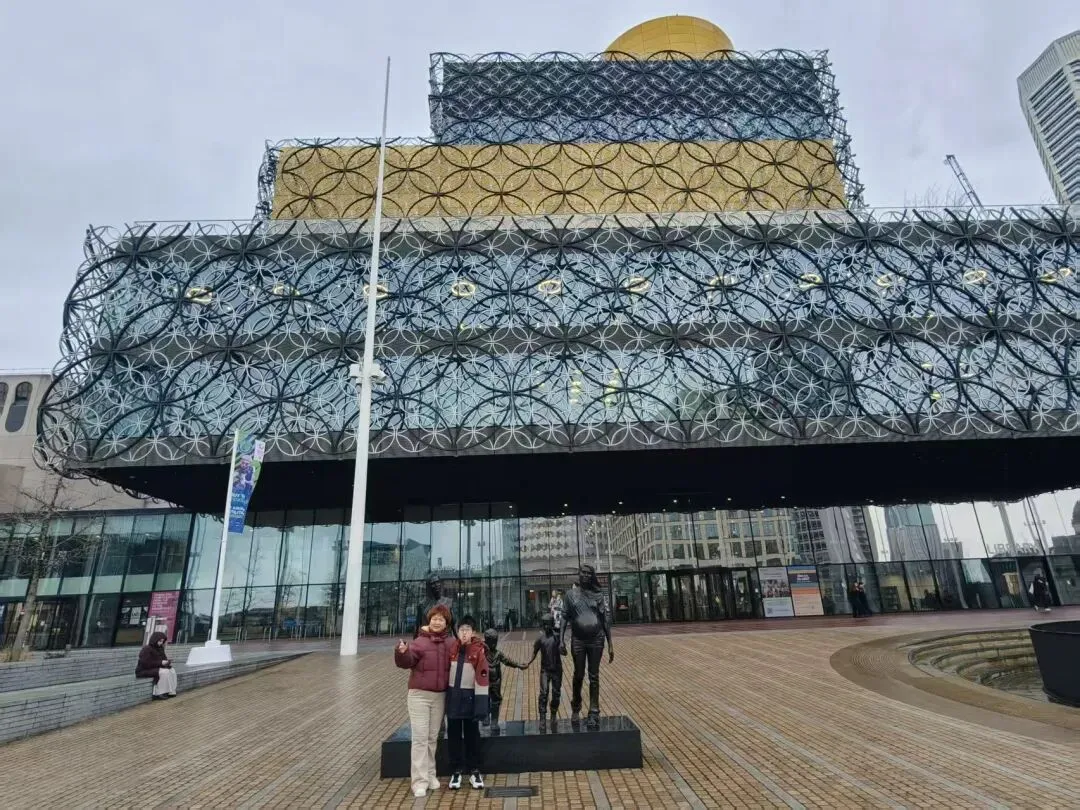 周一,小姨与姨爹做向导,带我们沿伯明翰运河步道缓步向市中心走去,开启一场地道的城市漫游。我们先后造访了伯明翰图书馆,又绕着庄重的议会大厦走了一圈。谷儿对这里的公共交通着了迷,眼见轻轨从眼前呼啸而过,竟挪不动脚步,非要盯着看个够。