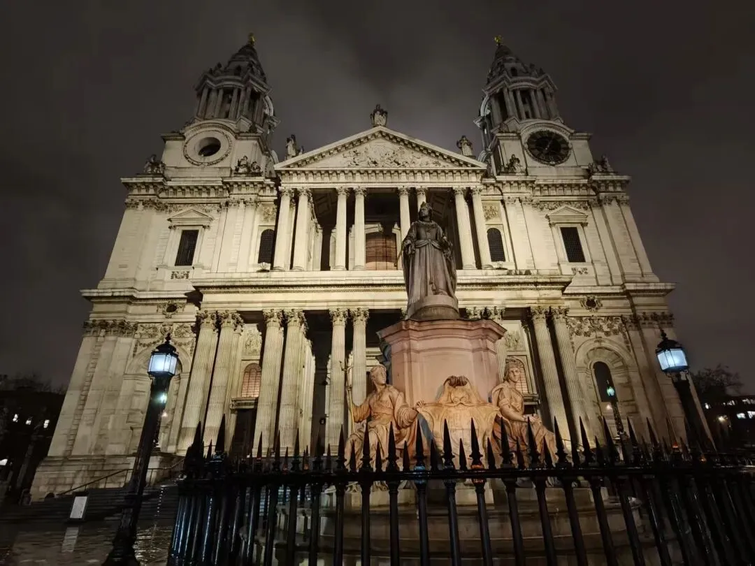 从敦伦眼下回走,正好遇到大本钟整点敲钟,钟声响起时,雨丝正密密地斜织着。钟声与雨声交织,在潮湿的空气中回荡,仿佛在诉说着伦敦的往事。雨越下越大,我们在地铁站等雨小一点就朝着白金汉宫出发,大本钟的轮廓在雨中愈发模糊。但我知道,明天,它依然会在这里,继续守望这座永远在变化却永远不变的城市。钟声会再次响起,穿透雨雾,穿透时光,在这座城市的记忆里,留下永恒的印记。从伦敦眼下来,我们马不停蹄赶往白金汉宫与圣保罗教堂,此时暮色已浓,夜幕悄然笼罩整座城市,我们虽未能入内探访,仅在建筑外围驻足凝望,看灯光勾勒出楼宇的典雅轮廓,也已然感受到这份独属于伦敦的庄重与静谧。